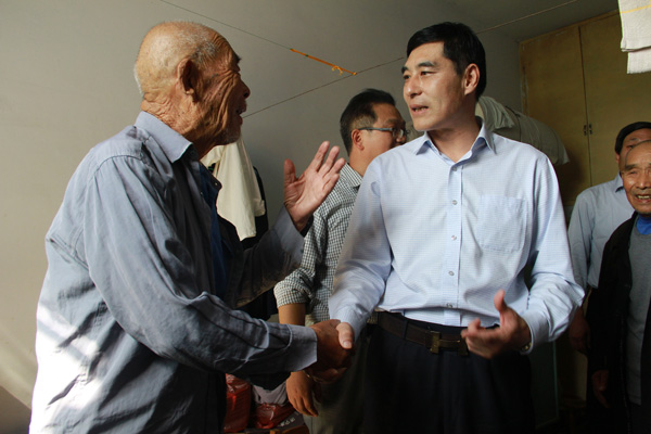 集團(tuán)公司董事長苗樹文到興隆莊鎮(zhèn)敬老院,與老人親切交談