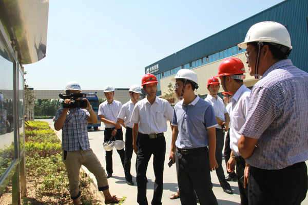 團(tuán)支部書記周超陪同濟(jì)寧團(tuán)市委書記鐘稱生等領(lǐng)導(dǎo)一同參觀集團(tuán)公司生產(chǎn)廠區(qū)