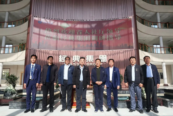 11月7日,山東省人力資源和社會保障廳基金監管處處長杜海濤一行到經典集團調研惠企政策實施有關情況。濟寧市兗州區政府黨組成員任樹章,區委組織部副部長、人社局局長尹江濤,區社保服務中心主任董樹文,經典集團總經理杜福生等陪同調研。