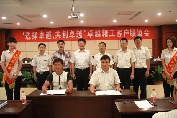 會議期間,卓越精工集團(tuán)有限公司營銷部王世峰經(jīng)理與沂水經(jīng)銷商張學(xué)好現(xiàn)場簽訂了特約經(jīng)銷商協(xié)議。