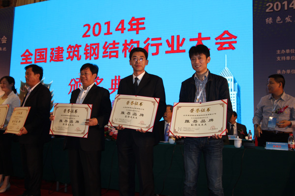 開幕式上,中國建筑金屬協(xié)會對鋼結構企業(yè)和個人進行了頒獎,山東經(jīng)典建設工程有限公司被授予2014-2016年中國建筑鋼結構行業(yè)推薦品牌信譽AAA企業(yè),經(jīng)典集團副總經(jīng)理鄭建康上臺領取了證書。經(jīng)典集團還參加了“四新”推廣交流會、技術論壇、鋼結構配套產(chǎn)品展示活動等。