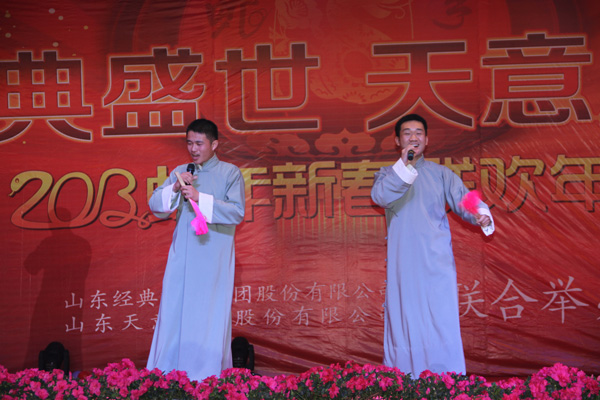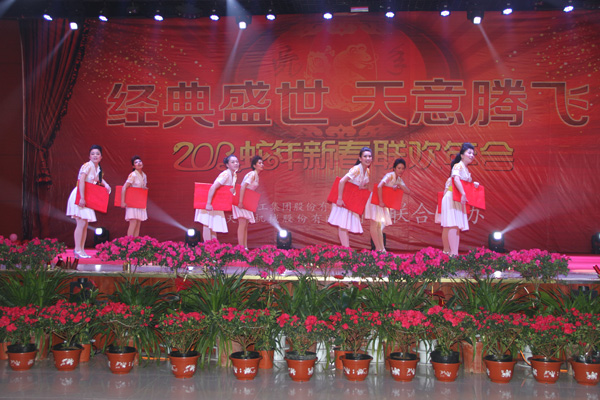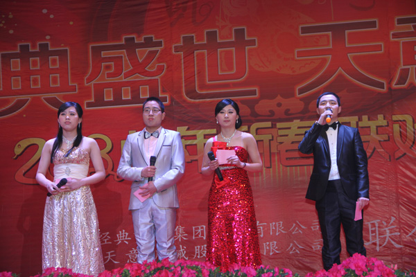為了迎接2013年新春佳節(jié),給公司全體員工及家人們營造歡樂愉快的節(jié)日氣氛,26日,由經(jīng)典集團公司主辦的主題為2013經(jīng)典盛世 天意騰飛新春年會,于集團公司宴會廳熱烈舉行。公司各級領(lǐng)導(dǎo)、全體員工及員工家屬近千人共同參加了本次年會。