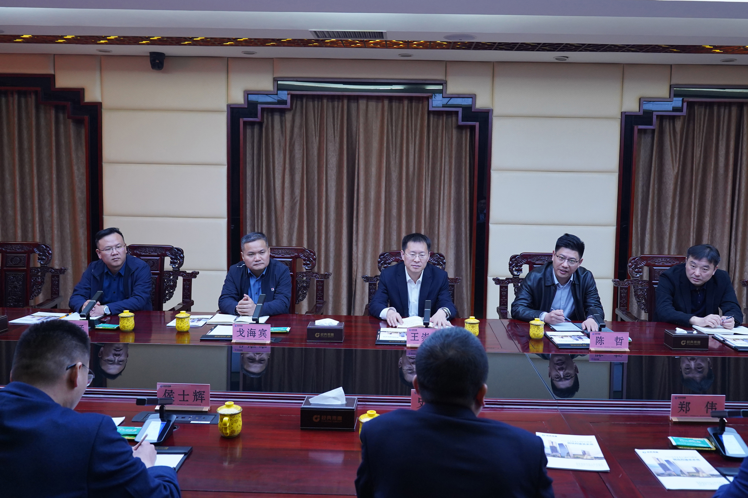 隨后召開合作洽談會。王崇景總經(jīng)理介紹了濟寧能源發(fā)展集團實施“一體兩翼、雙輪驅(qū)動+園區(qū)經(jīng)濟”戰(zhàn)略,加快構(gòu)建“12326”產(chǎn)業(yè)矩陣,發(fā)展新能源、港航物流、高端制造、大宗商品貿(mào)易等業(yè)務有關(guān)情況,并對經(jīng)典集團發(fā)揮產(chǎn)業(yè)鏈優(yōu)勢,創(chuàng)新發(fā)展模式,建設精品工程,打造產(chǎn)業(yè)集群給予了高度評價。