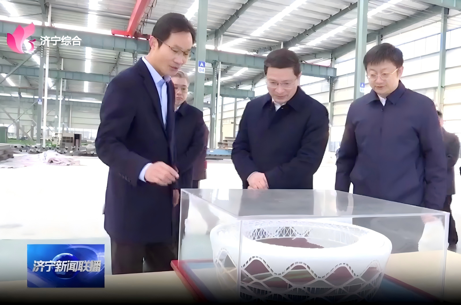 溫金榮書記對(duì)項(xiàng)目現(xiàn)階段成果表示肯定,并詳細(xì)詢問了企業(yè)市場(chǎng)訂單、行業(yè)趨勢(shì)、代表工程、智能化投入及國際市場(chǎng)拓展情況。在交流中,溫書記了解到經(jīng)典集團(tuán)作為山東省鋼結(jié)構(gòu)建筑產(chǎn)業(yè)鏈鏈主企業(yè),積極推動(dòng)產(chǎn)學(xué)研合作與數(shù)智轉(zhuǎn)型,發(fā)展新質(zhì)生產(chǎn)力,不斷拓展細(xì)分領(lǐng)域,與多家央國企建立合作,先后榮獲國家制造業(yè)單項(xiàng)冠軍、國家專精特新重點(diǎn)小巨人企業(yè)、全國質(zhì)量標(biāo)桿企業(yè)、國家智能制造示范工廠等多項(xiàng)榮譽(yù)。